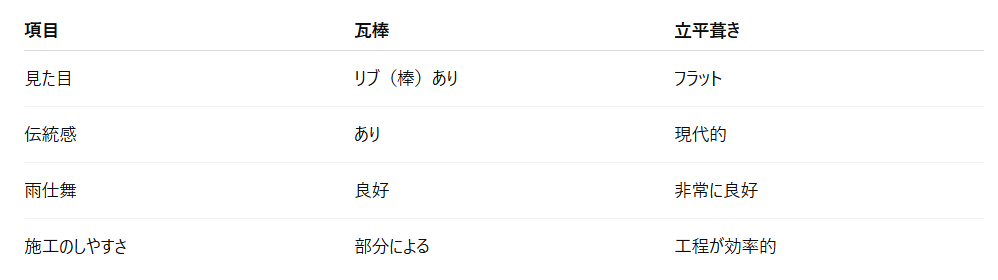 - 瓦材と比べると耐候性に差が出ることがあり、素材特性に応じたメンテナンス計画が必要