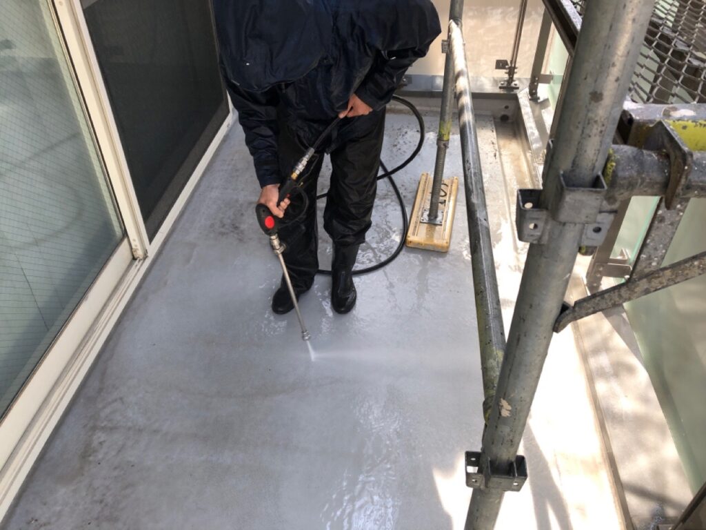 - ベランダ床高圧洗浄