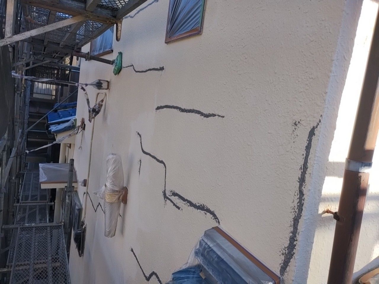 2枚目の写真はモルタルの外壁で起こりやすいひび割れを補修したものになります。