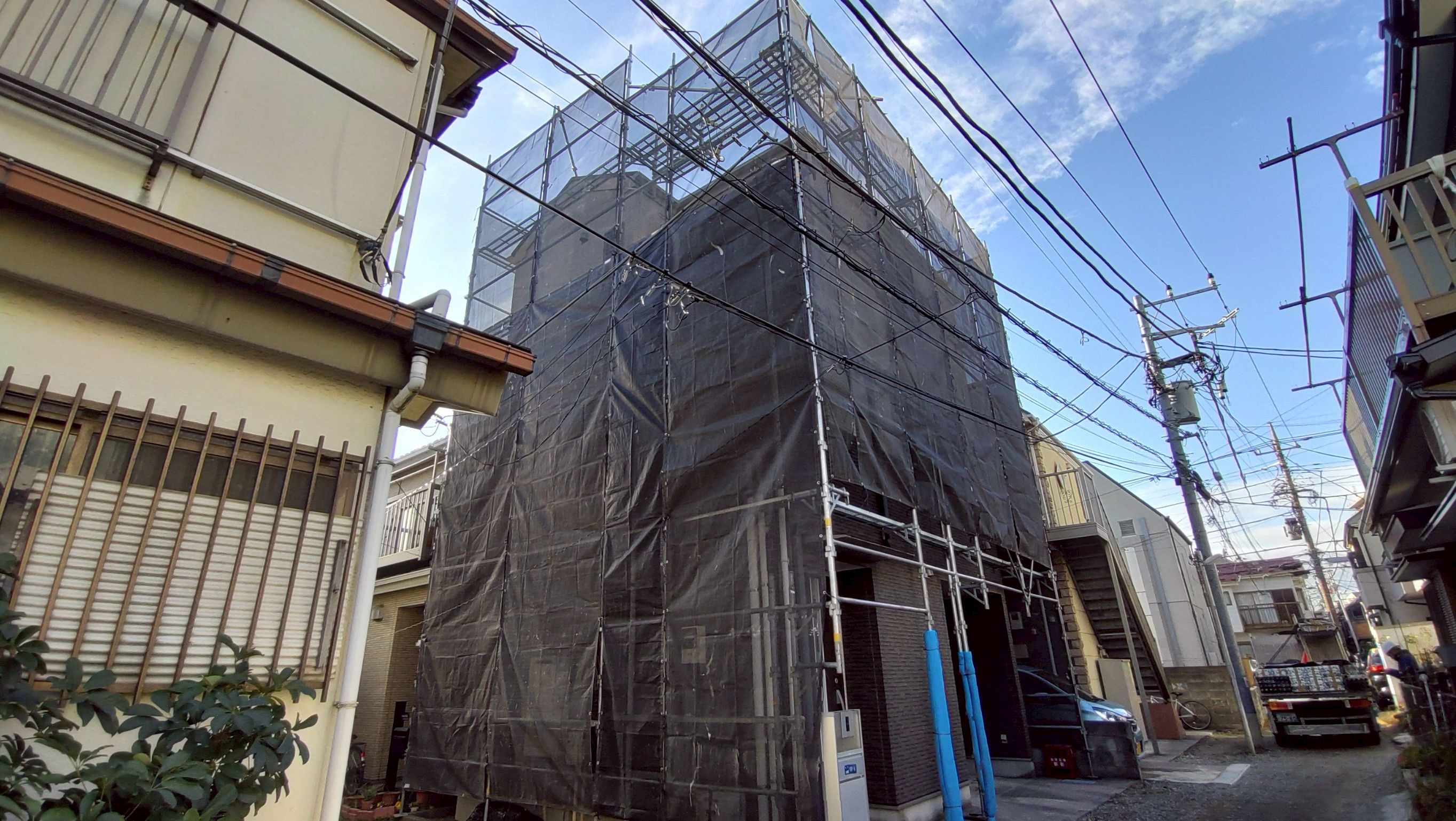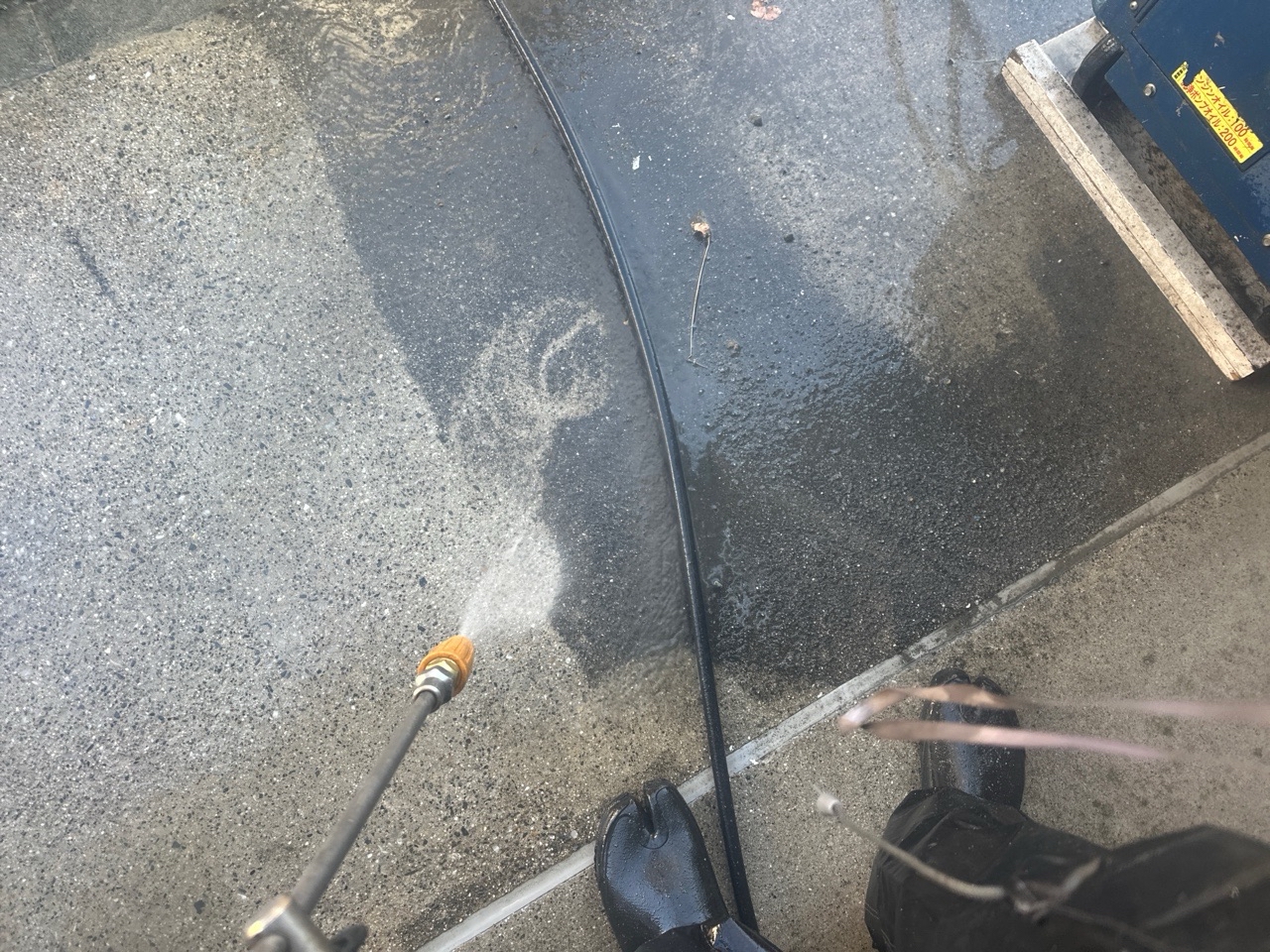 こちらは足場組立後、次の日から高圧洗浄といって
