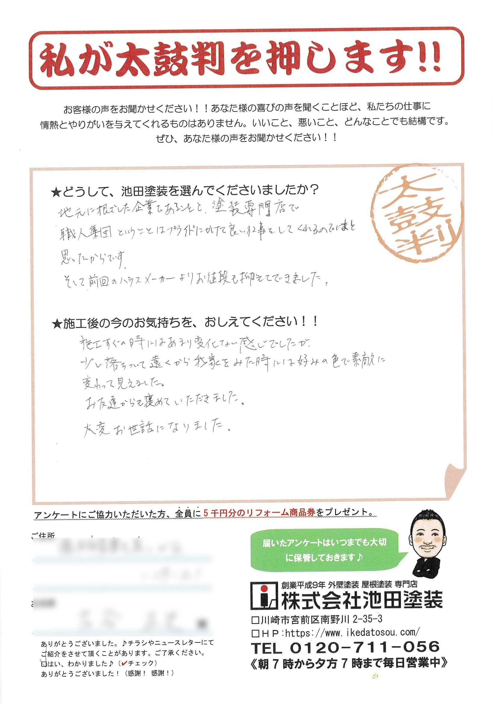 どうして、池田塗装を選んでくださいましたか?