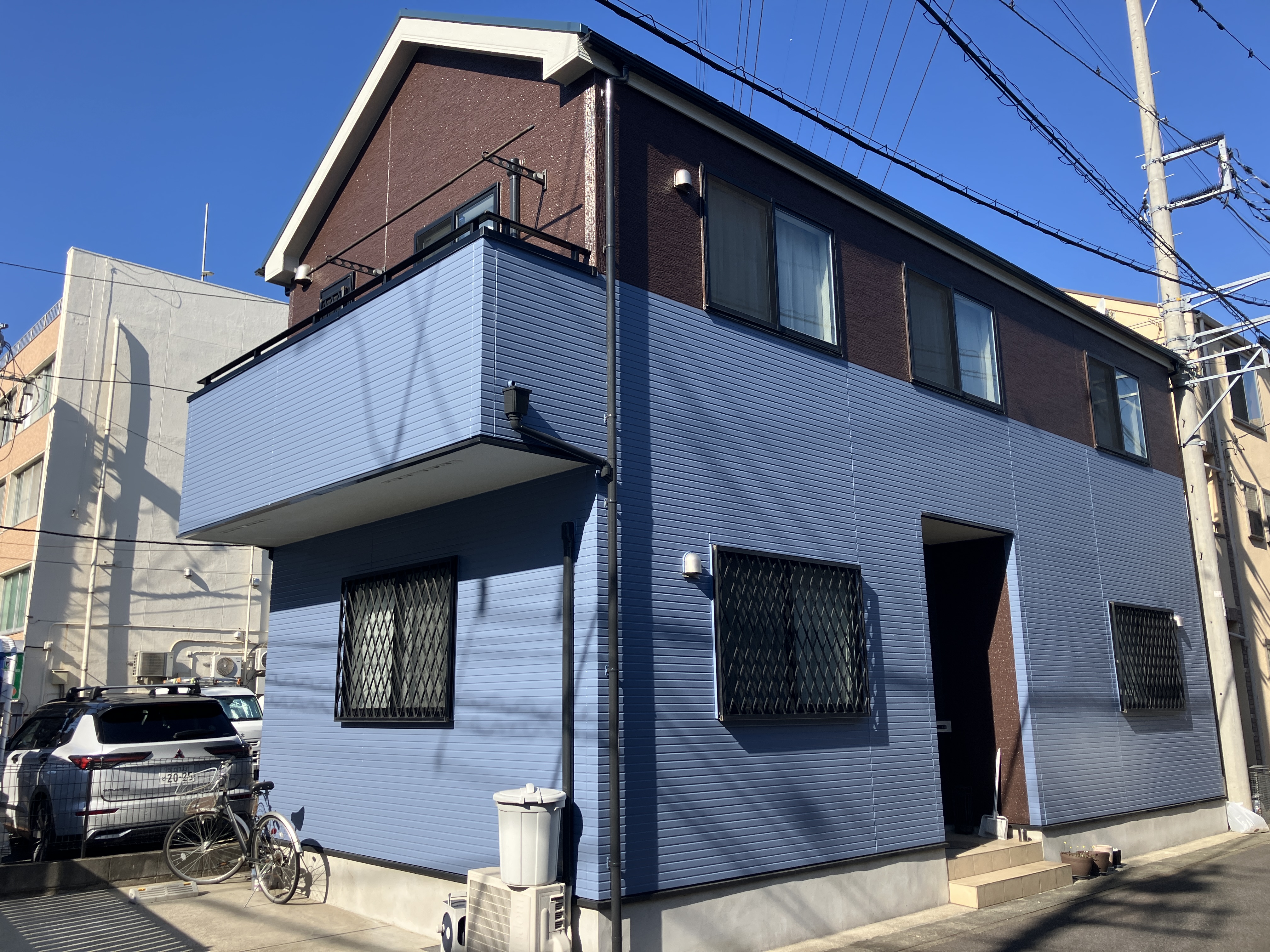 外壁 スレートブルー・ヤララブラウン 屋根 マウンテンブルー