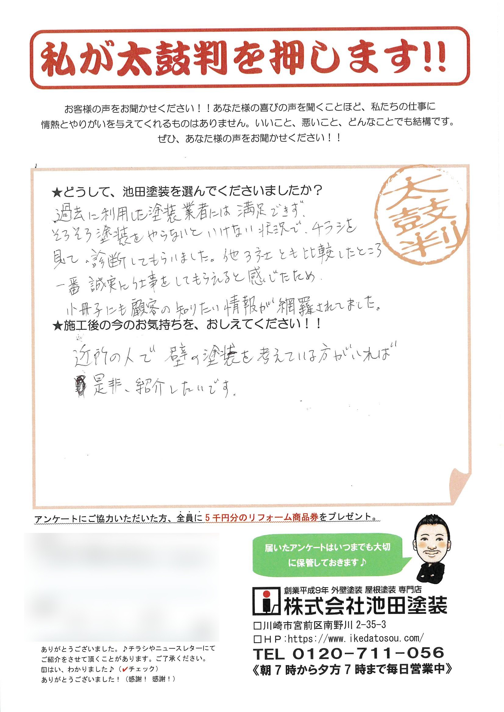 どうして、池田塗装を選らんでくださいましたか?